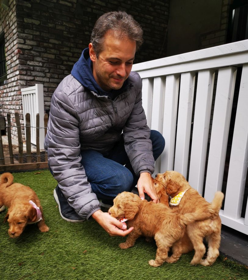 Um einen geeigneten Blindenführhund zu bekommen, besuchte die Familie einen renommierten Züchter in Holland. Bei der Auswahl verließ sich Michele auf das Urteil des Züchters und des Trainers: Neugierde, ein gelassenes Gemüt und die Eigenschaft gerne mit Menschen zusammen zu sein sind essenziell. Der Hund und die Eltern müssen außerdem ein einwandfreies Gesundheitszeugnis vorweisen. Eine Portion Bauchgefühl gehört aber auch dazu: „Kaja ist gleich auf Michele zugekommen“, erinnert sich Micheles Frau.